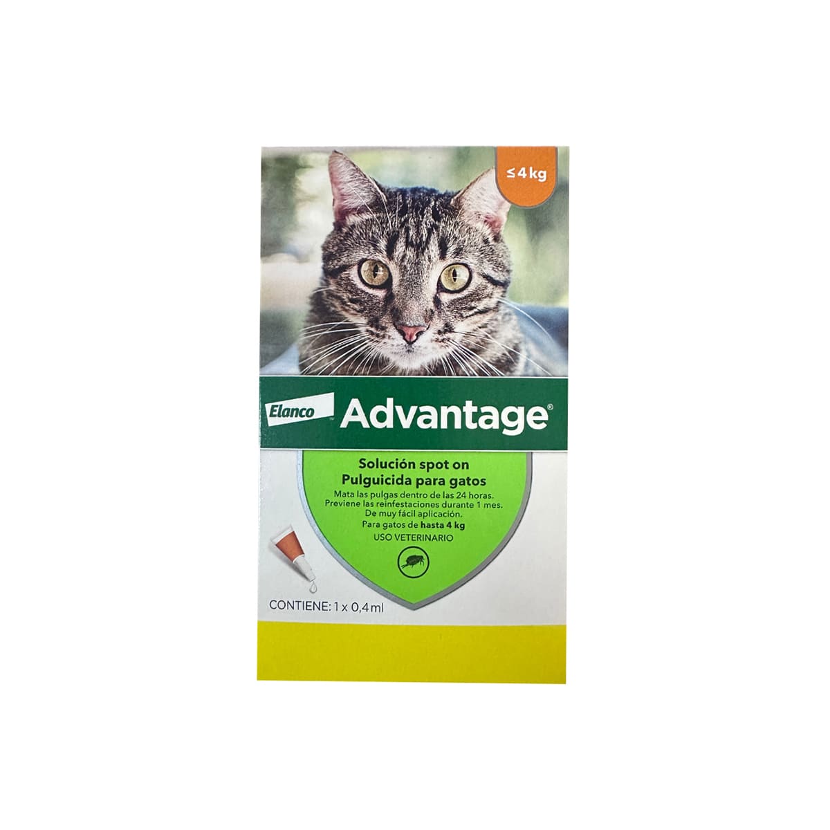 Pipeta Advantage Bayer Gatos 4kg es una solución tópica (Spot-On), que elimina efectivamente las pulgas. ADVANTAGE® GATOS es el único producto que controla tres estadíos del ciclo de vida de las pulgas (adultos, larvas y evita la postura de huevos). Elimina del 98 al 100% de las pulgas adultas presentes sobre la mascota en tan sólo 12 horas.Suspende la producción de huevos de manera inmediata y elimina las larvas preexistentes en el ambiente. Ideal para usar en peluquería inmediatamente después del baño (piel y pelo seco), sin necesidad de esperar varios días.
